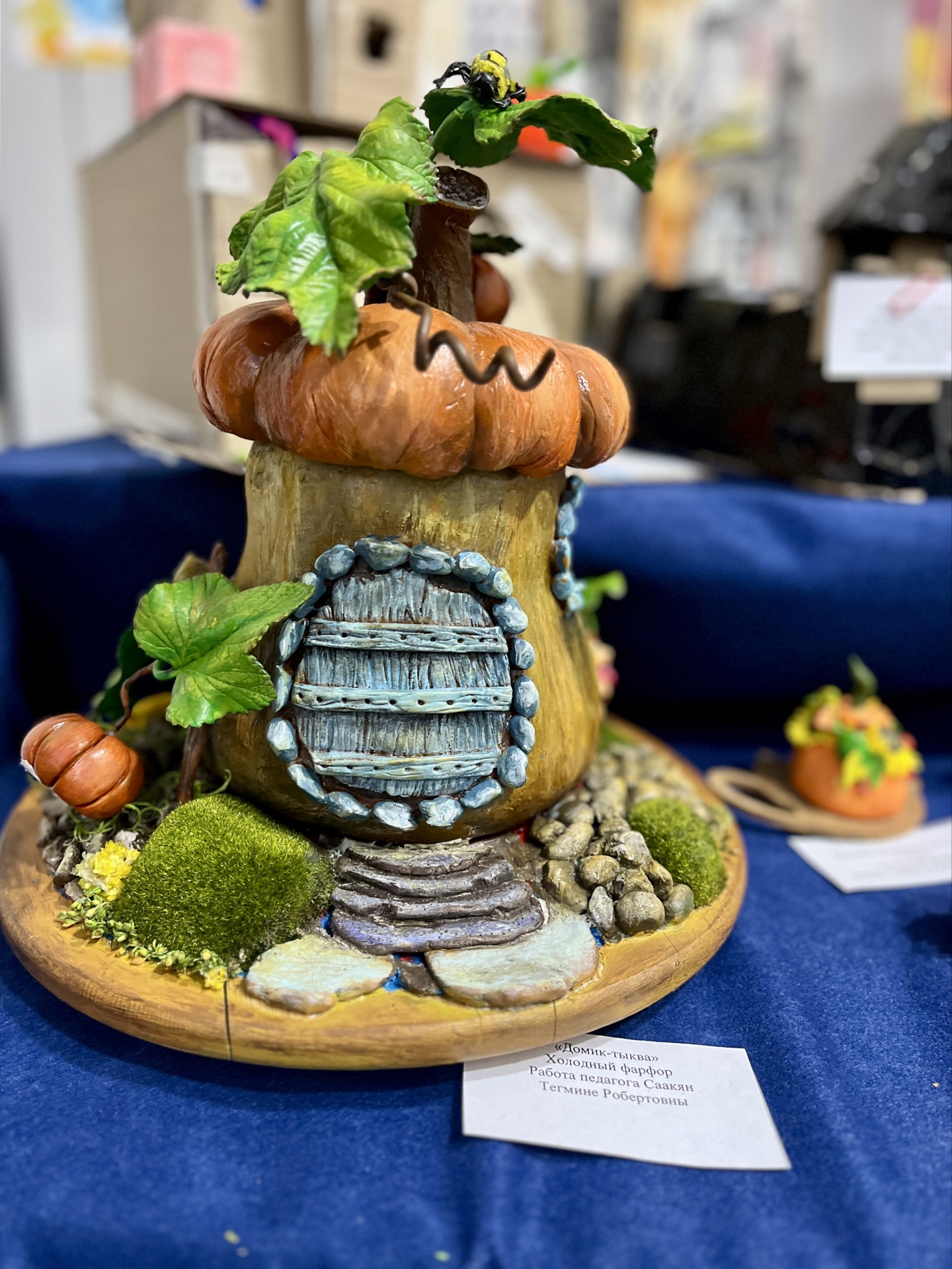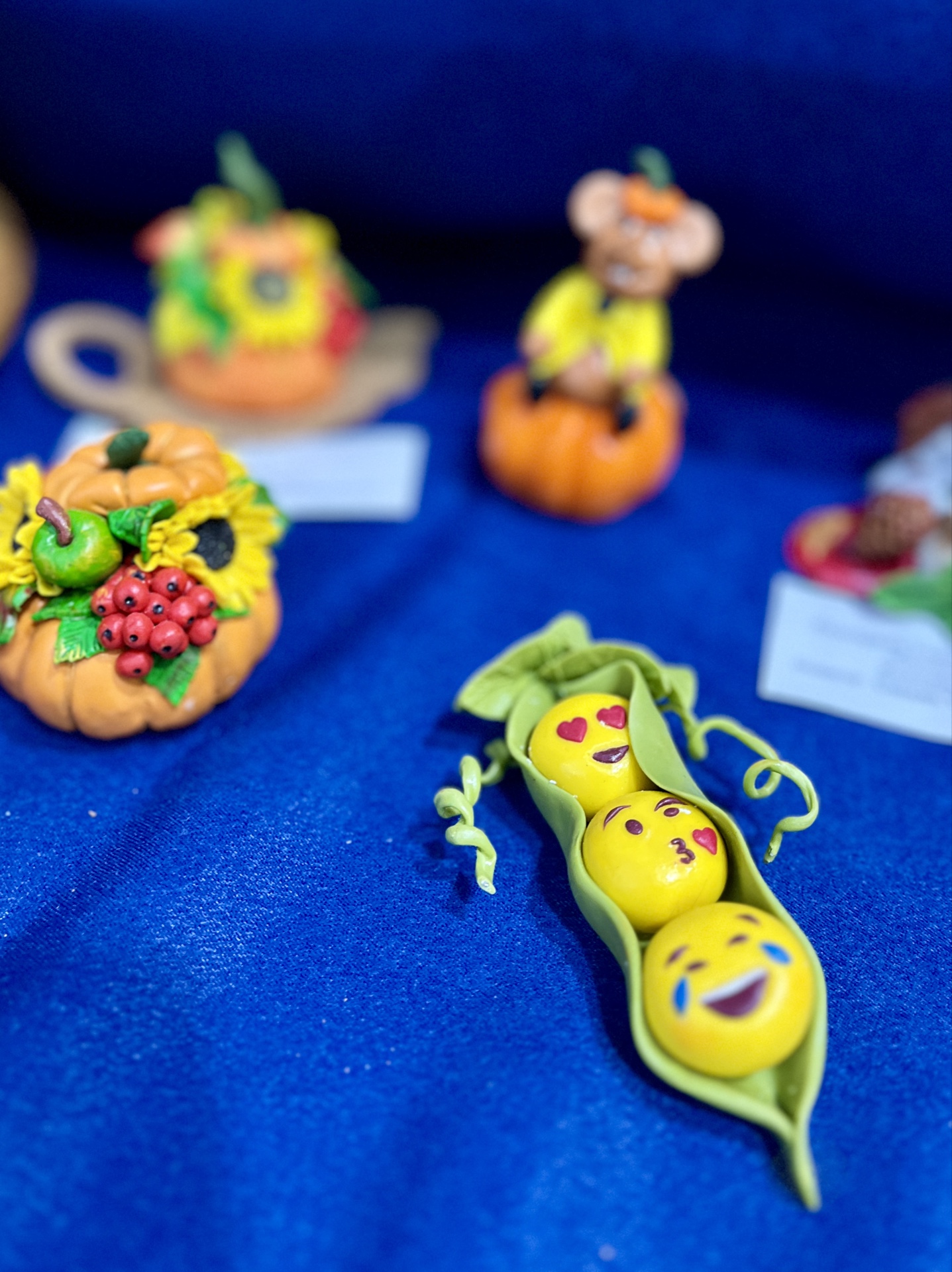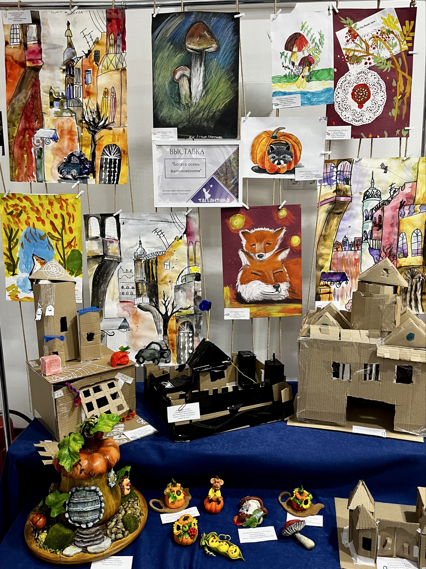 На выставке были представлены работы детей разных возрастов и объединений. Все они были выполнены с большой любовью и фантазией. Здесь можно было увидеть поделки из холодного фарфора: тыквы, грибы, осенние композиции. Также были представлены картины, нарисованные на осеннюю тему, макеты исторических замков