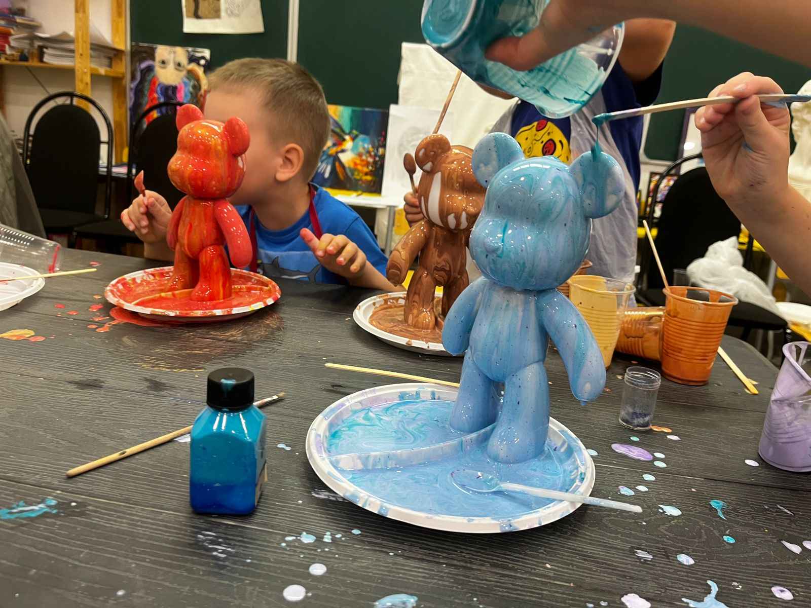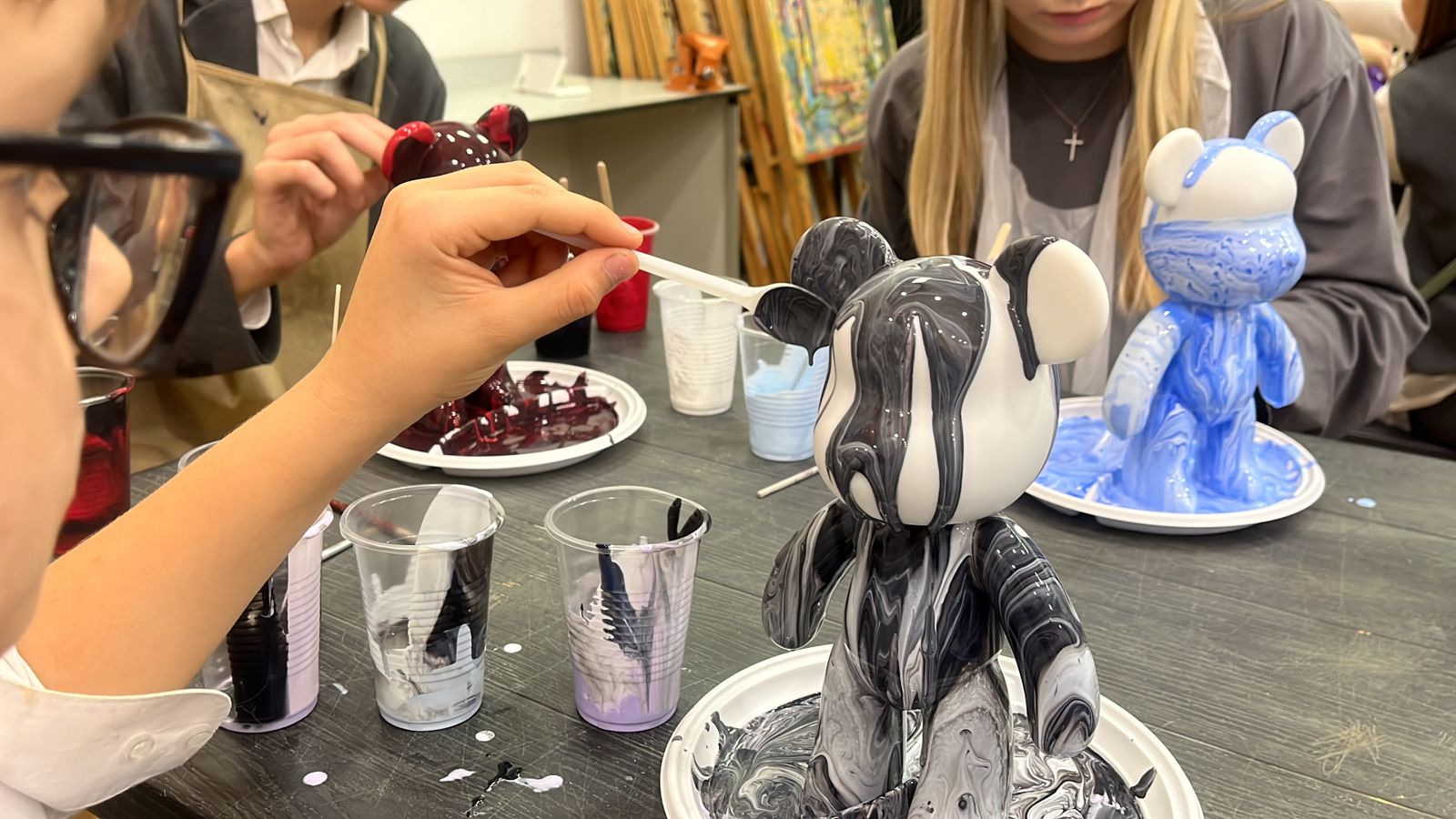 17 октября руководитель нашей художественной школы Любовь Нижегородова провела мастер-класс по акриловой заливке мишки в технике «Флюид арт». Флюид–арт это форма абстрактного искусства, в которой используются акриловые краски жидкой консистенции. Акриловые краски наливаются в произвольном порядке и, взаимодействуя друг с другом, создают уникальные и визуально органичные мотивы.